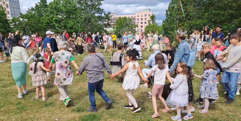 Även i år ledde Söderringen dansen kring midsommarstången i Brandbergen och vid Söderledskyrkan.
